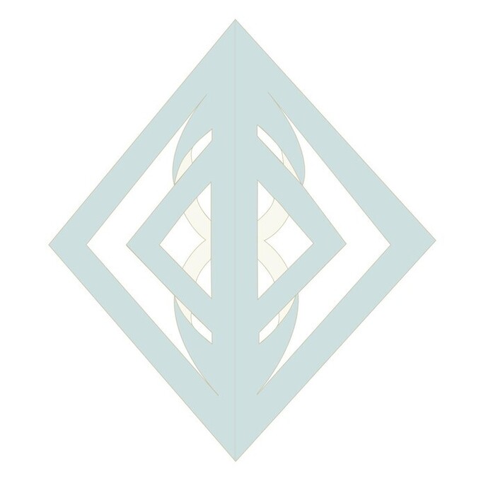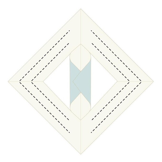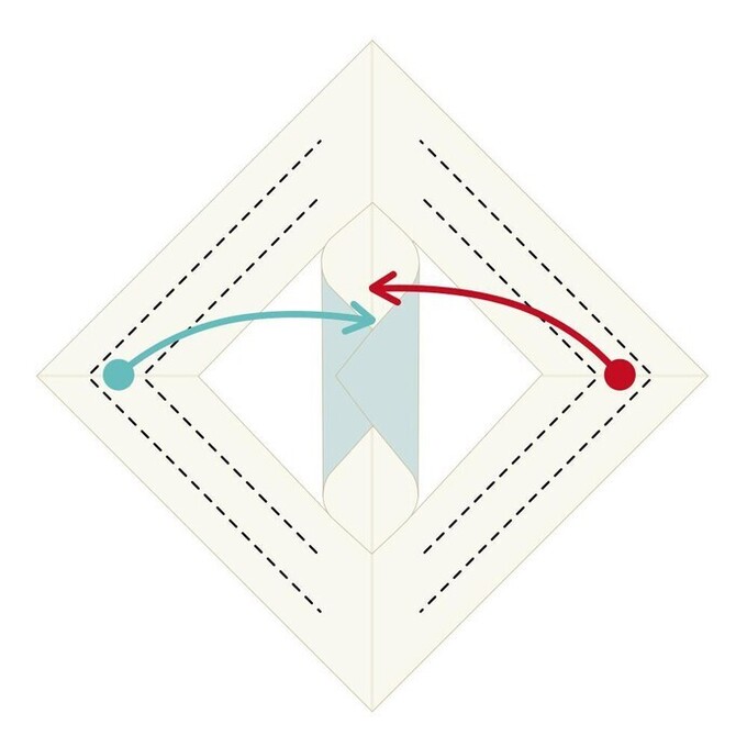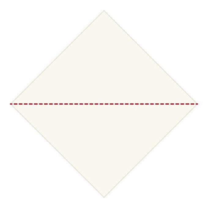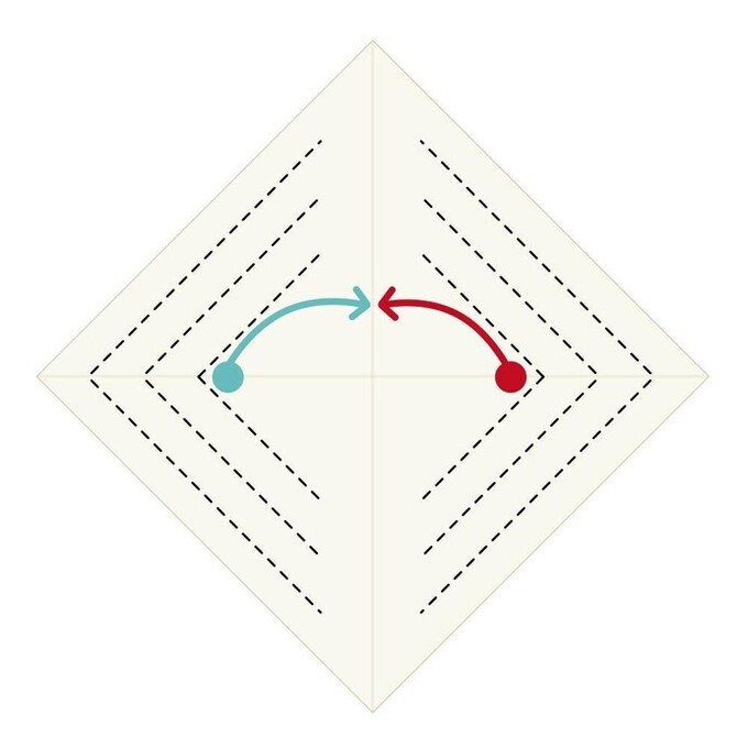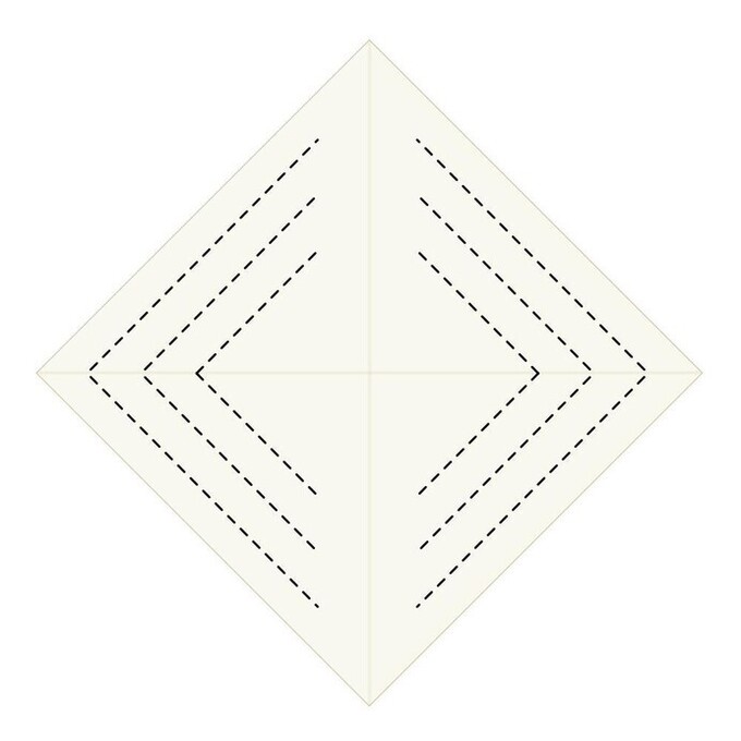 - 一番上に見えているひし形の、短い方の辺を中心線に合わせて折る