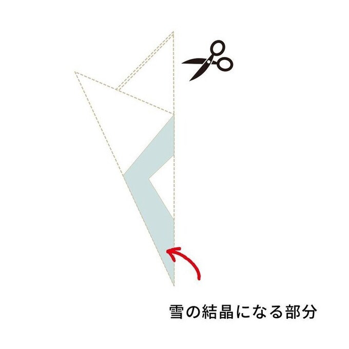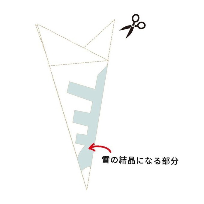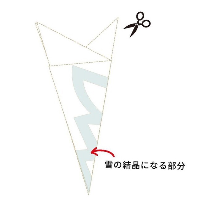 - 図の「雪の結晶になる部分」を残し、ハサミでカットする