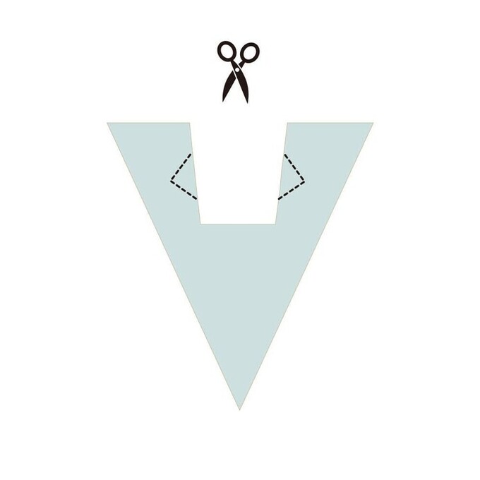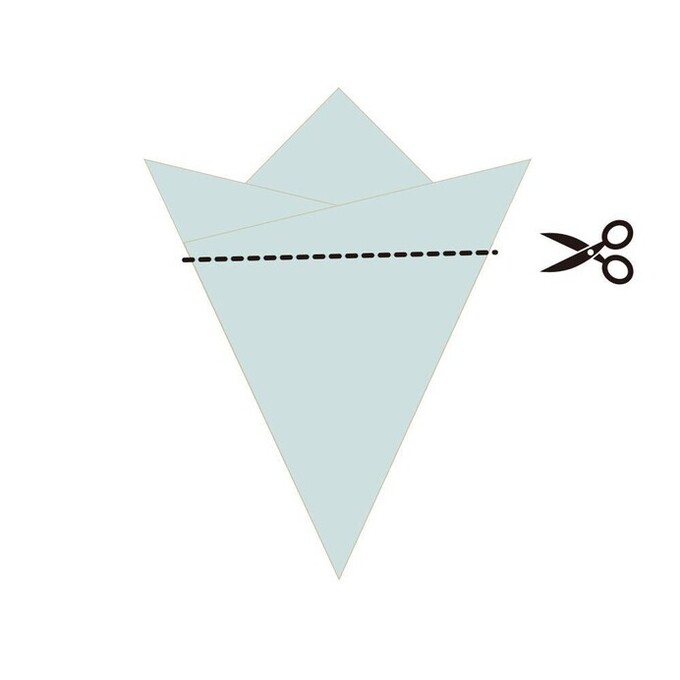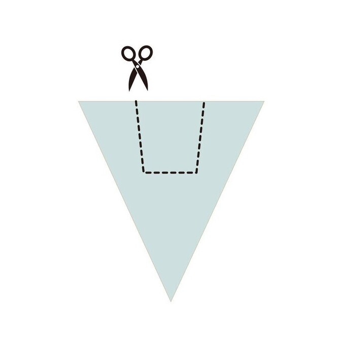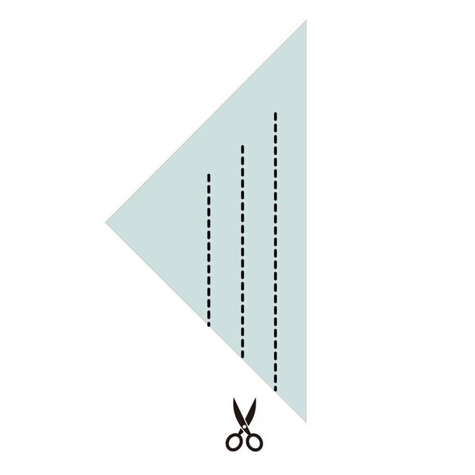 - 三角形の閉じている側に、3カ所切れ目を入れる。この時、切れ目の先端を1cmほど残しておく