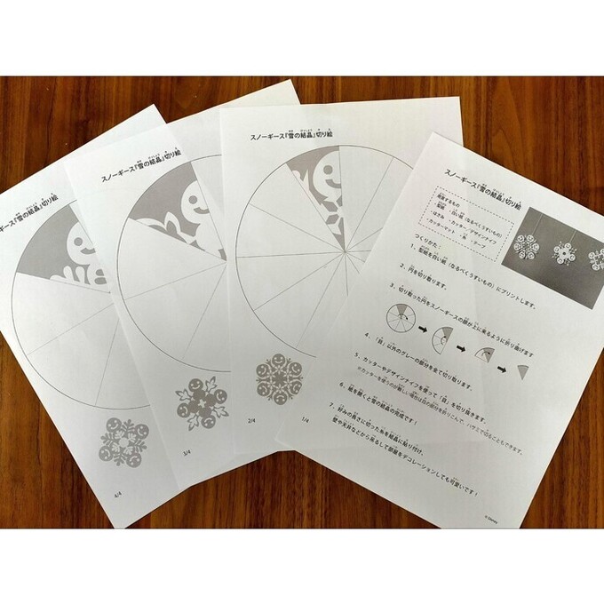 型紙には、「雪の結晶1」〜「雪の結晶3」の3種類があります。「雪の結晶1」は4回折りで一番多く折り、「雪の結晶2」と「雪の結晶3」は3回折りでできる仕様です。