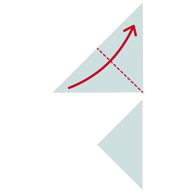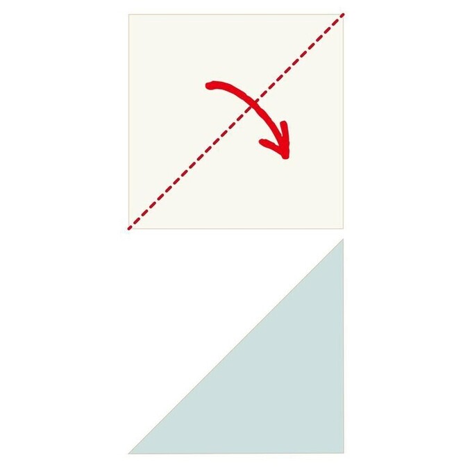 - 向かい合う角を合わせて、三角形になるように折る