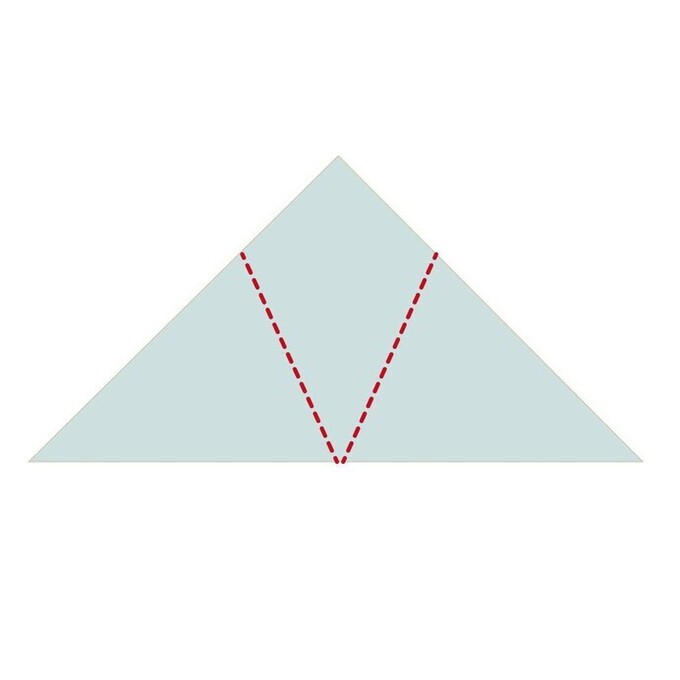 - 底辺の中心できれいな角ができるように、三角形を3等分に折る