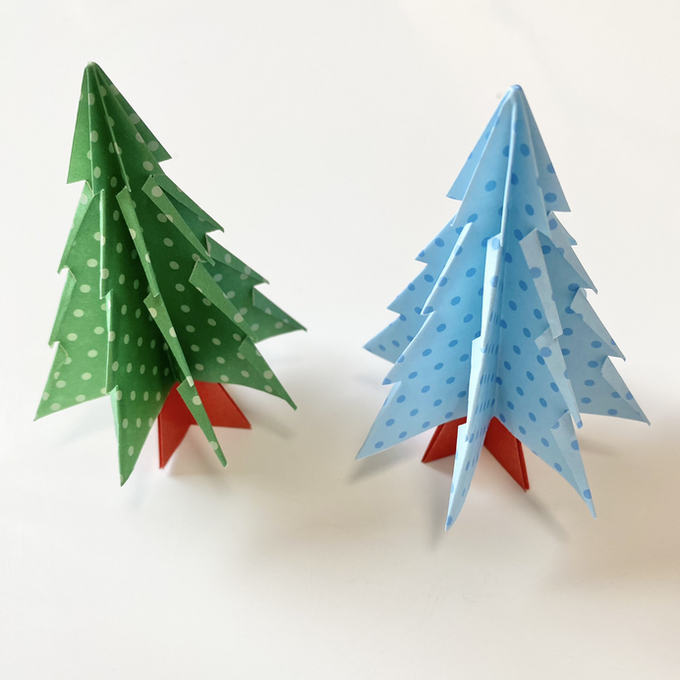 折り紙2枚で完成する立体的なクリスマスツリーです。