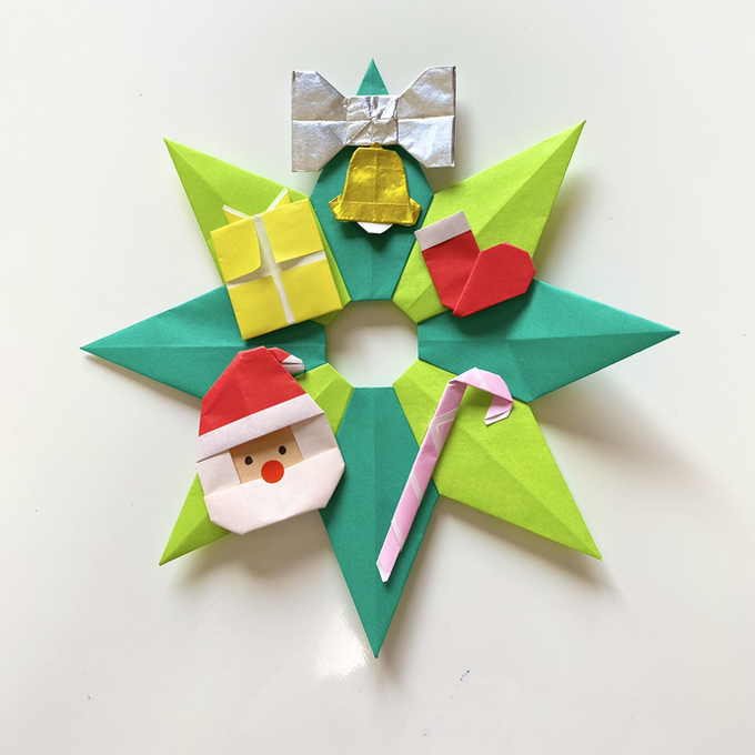 クリスマスの折り紙:ポップなクリスマスリース