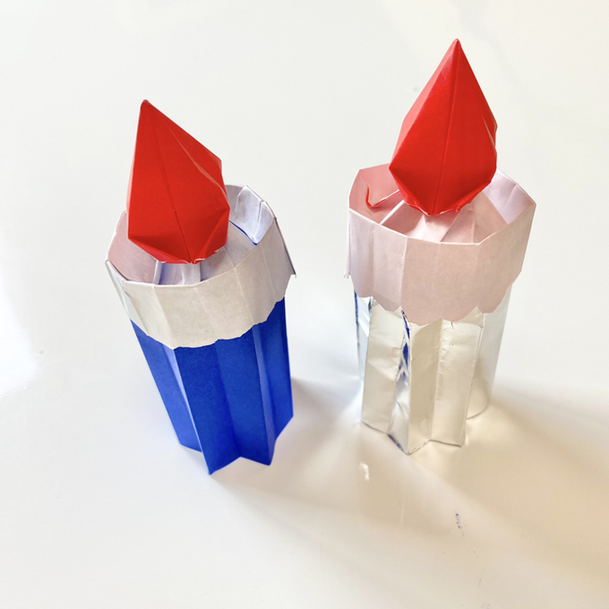 折り紙を3枚使って完成する立体的なキャンドルです。