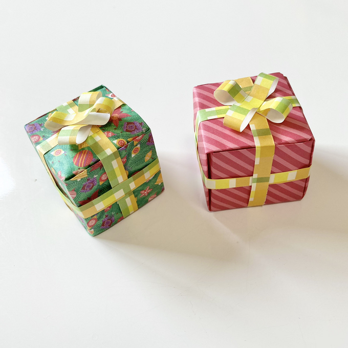 クリスマスの折り紙:オーナメントにも!立体的なプレゼント