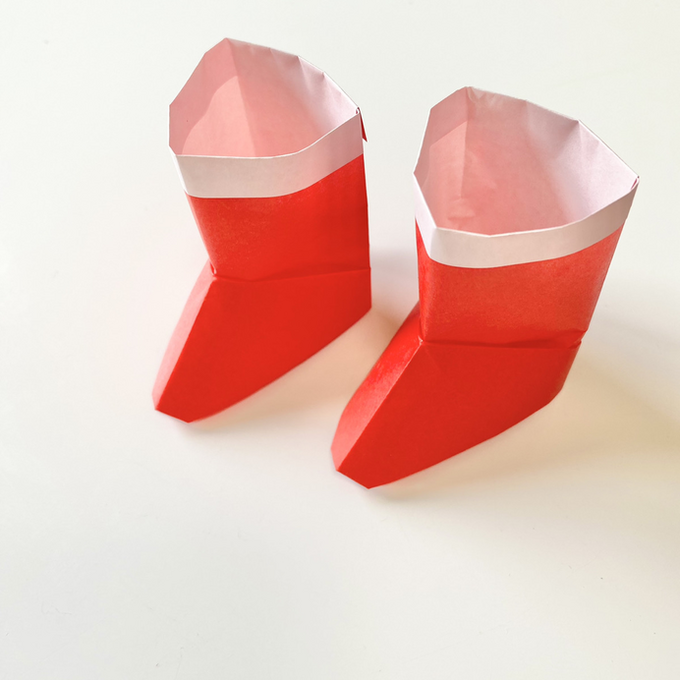 折り紙1枚で簡単に立体的なブーツが完成しました!! とっても簡単です!