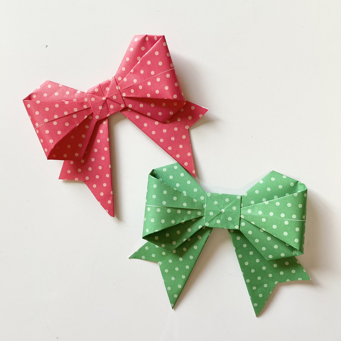 クリスマスの折り紙:折り紙1枚でおしゃれで本格的なリボン