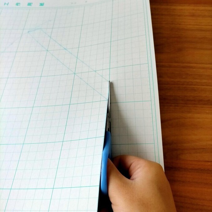 さらに③のように、約2cmの幅でのりしろを作ります。角を少し落としておくと、横からはみ出さずにきれいに貼り合わせられます。