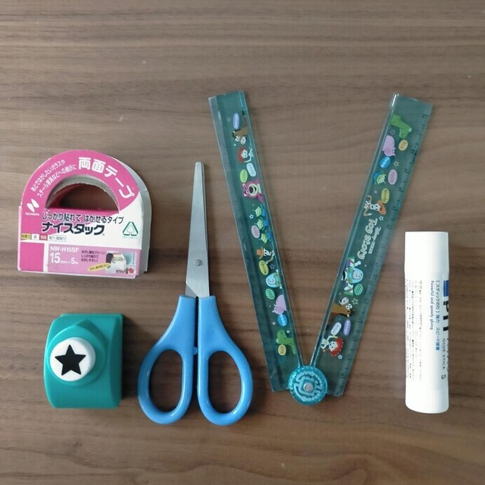 基本的に、のりとはさみ、定規があれば作れます。定規は30cmのものがあると作りやすいです。クラフトパンチは飾り付けを手軽にかわいくしたい時に重宝しますよ。