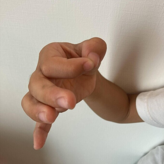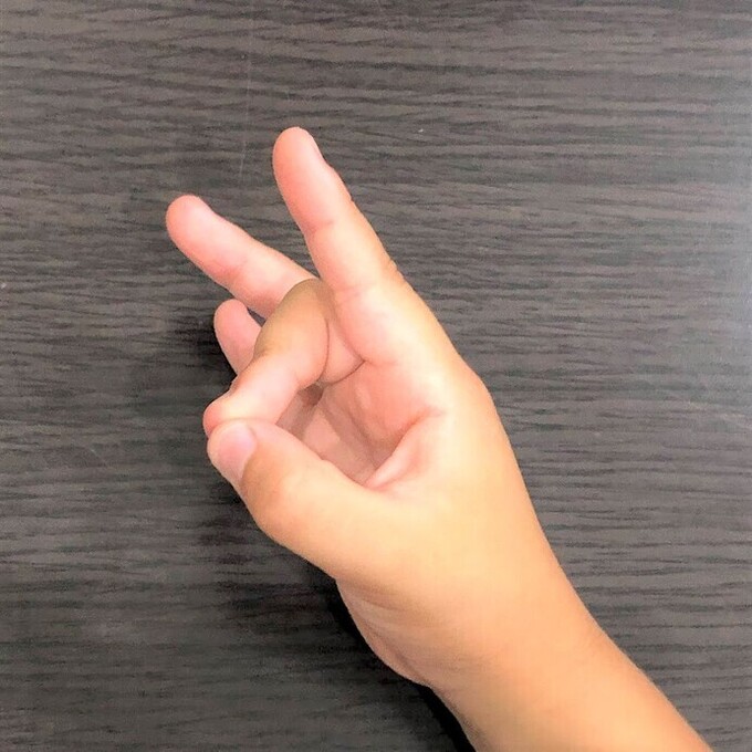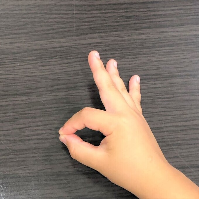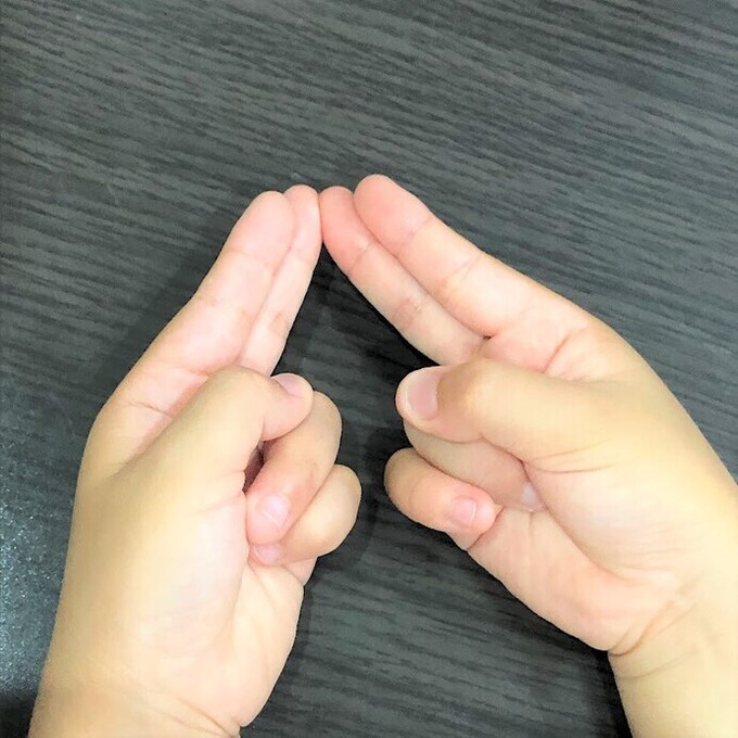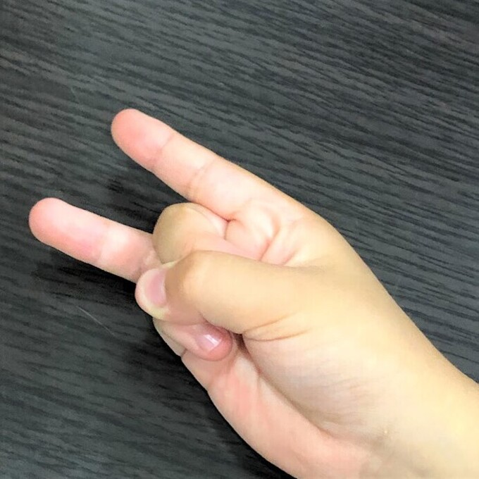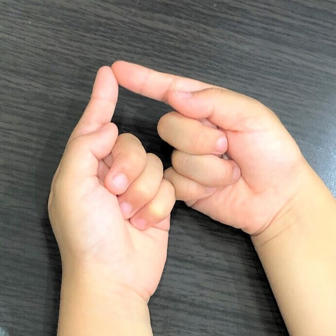 人差し指と小指を使うパターン。子どもはまだ指が短いため、人差し指と小指を近づけるのがちょっと難しいようです。