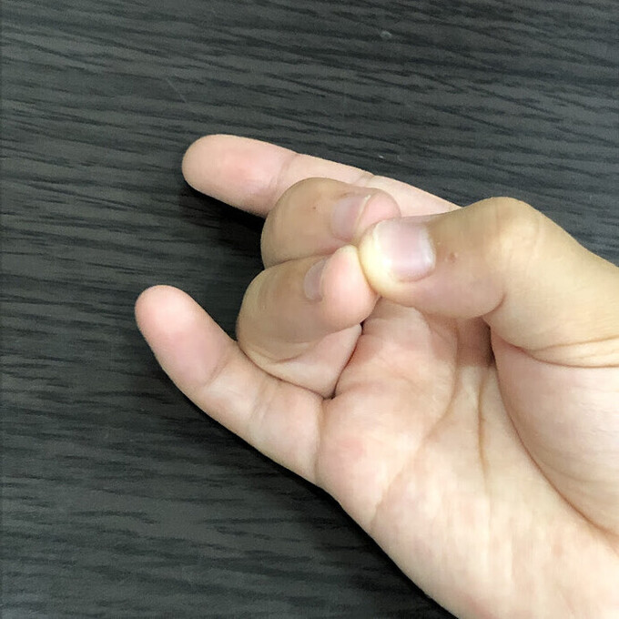 - 指を入れる深さを割と浅めに、2本の第一関節がはっきり見える程度にする