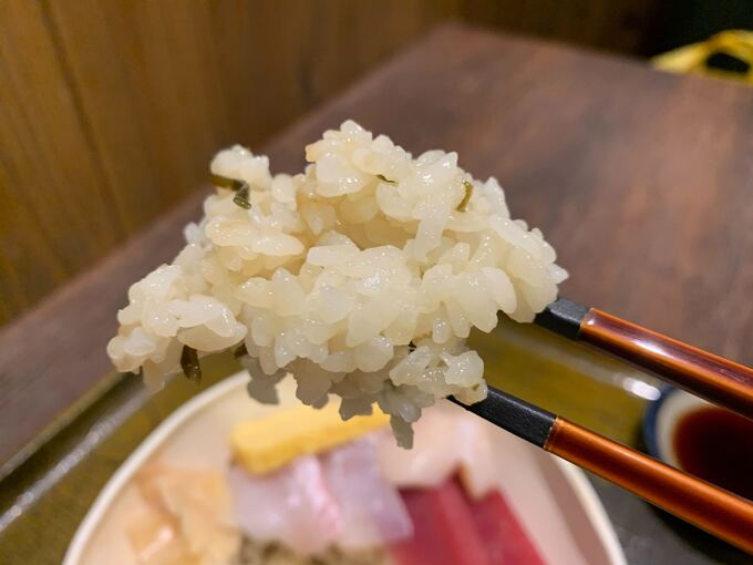 酢飯には細かく刻まれた昆布も入っていて、ほんのり甘いんです。お米はもっちり~としてて、これだけでも食べられちゃいます(笑)。