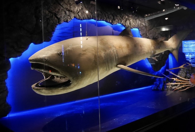 幻のサメ「メガマウス」の剥製は、体長およそ5メートルと迫力満点!