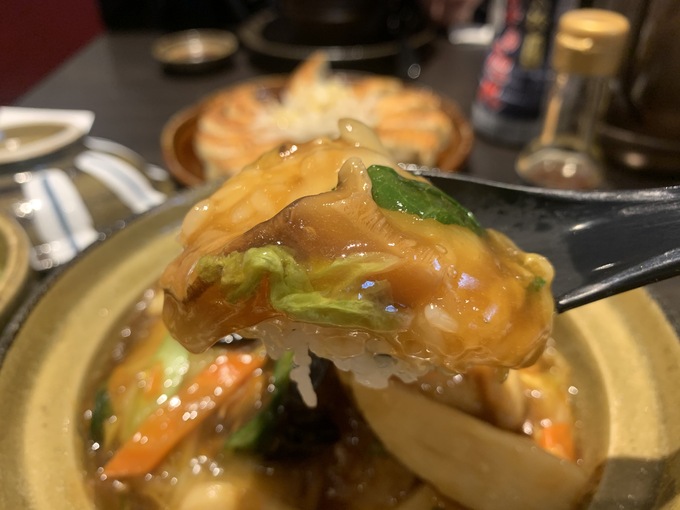 すごい熱い!!!あんがとろとろしていて、野菜の旨味がこれでもかというくらい詰まっています。