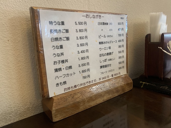 メニューはこちら。迷ったのですが、一番人気のうな重を注文しました。