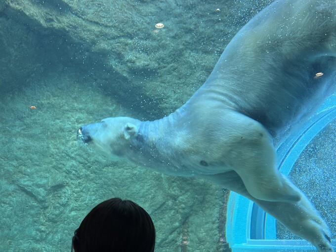 ふれあい体験のあとは泳ぐ白くまを見たり…