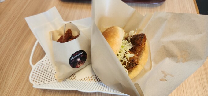 今回頼んだのは、コラボメニュー「堕天使の宝珠(タコのからあげ)」と、あじフライバーガー。